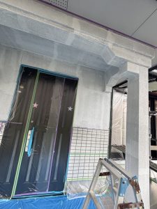 小さなヒビや割れなどが目立つ箇所は縦目地・横目地ともにシール打ちしていきます。 樋持ち錆止めなど仕上げ前の下地補修をしっかりとしていきます。