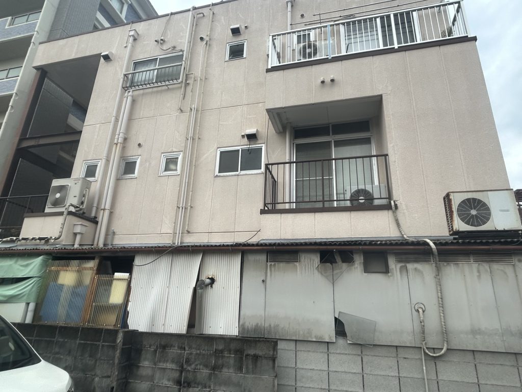 店舗裏側の壁が雨漏りするとの事、原因を探し防水塗装でしっかり施工していきたいと思います!