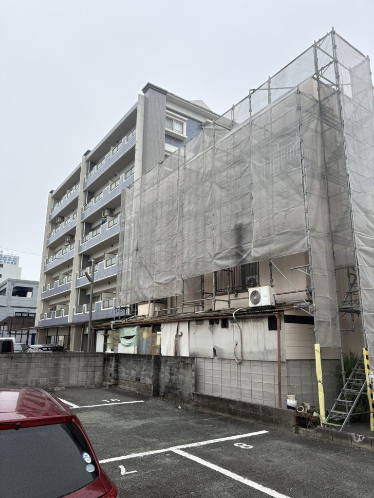今日から補修材やコーキング等でサッシ周り、壁のヒビ割れ等、考えられる箇所を徹底的に補修していきます。