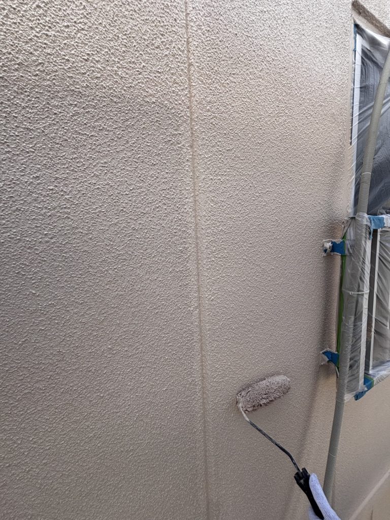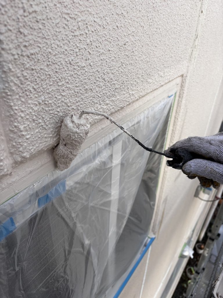 中塗りで塗膜をしっかり付けていきます 2025年10月9日 最終更新日時 : 2025年10月9日 スタッフ 使用する塗料はプレミアムシリコンになります。 コーキングが済んだサッシ周りもしっかりと塗っていきます