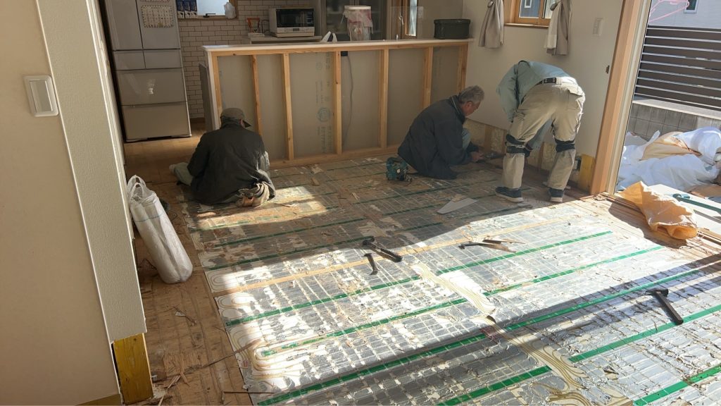 床暖房の面に気を配りながらゆっくり剥いでいきます。