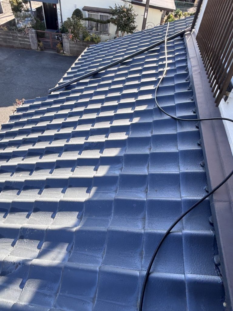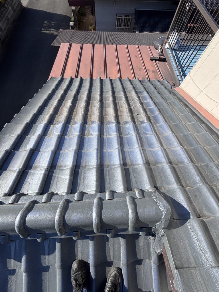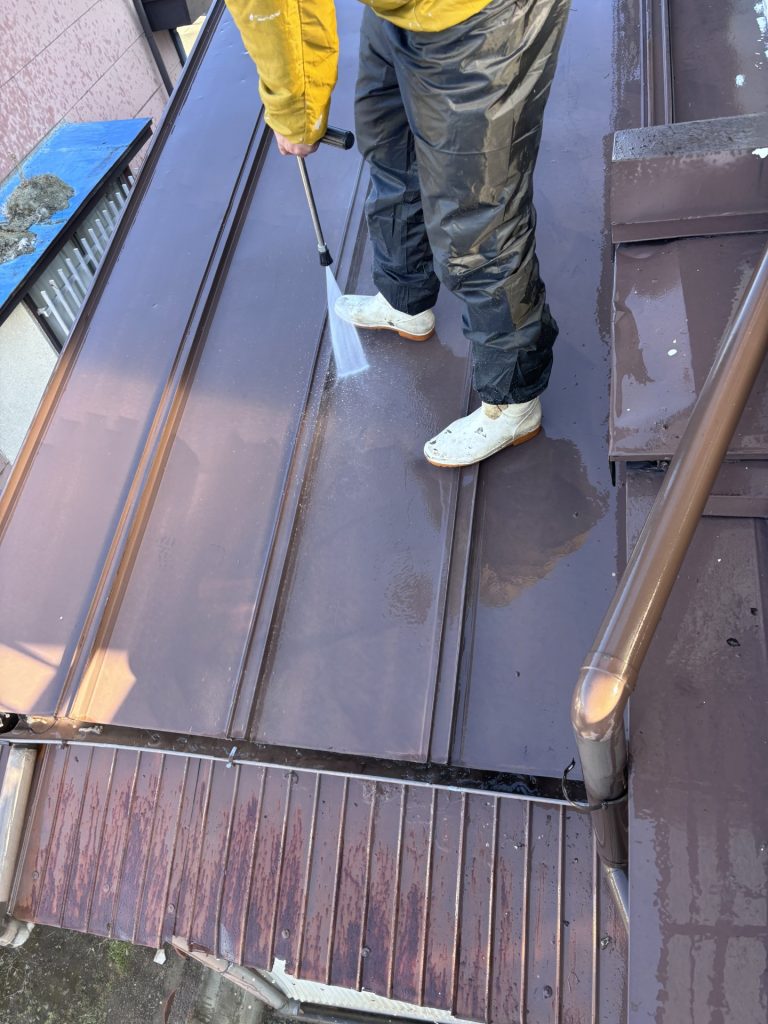 屋根瓦・瓦棒(トタン)塗装前の洗浄です。